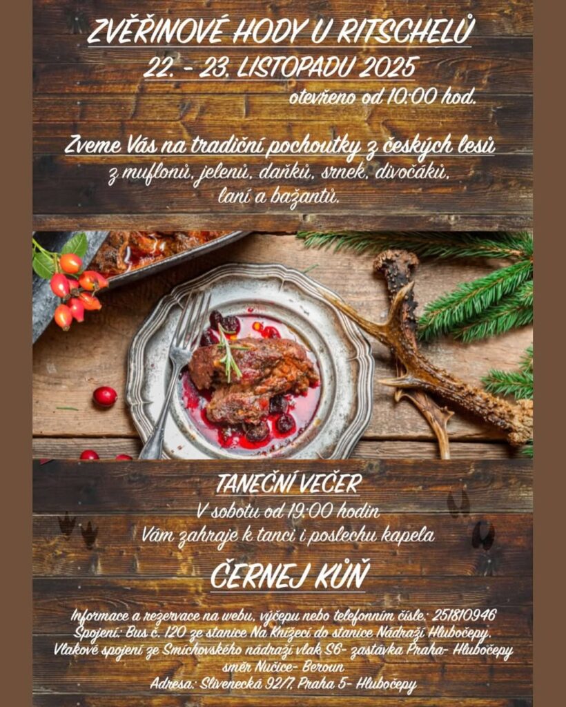 Přijďte se zahřát poctivou porcí masa z českých lesů – muflon, jelen, daněk, srnka, divočák, laň nebo bažant.